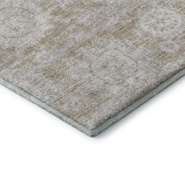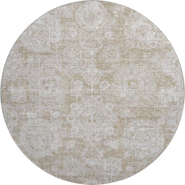 Mayfield Premium Machine Washable Indoor/Outdoor Geometric AMF634 Beige 8 ft. x 8 ft. Round Area Rug