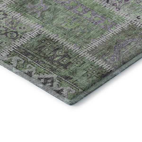 Mayfield Premium Machine Washable Indoor/Outdoor Geometric AMF635 Green 8 ft. x 10 ft. Area Rug