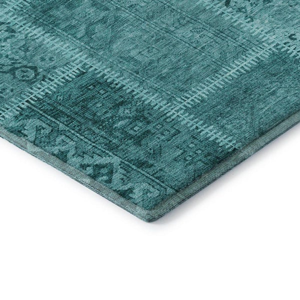 Mayfield Premium Machine Washable Indoor/Outdoor Geometric AMF635 Turquoise 3 ft. x 5 ft. Area Rug