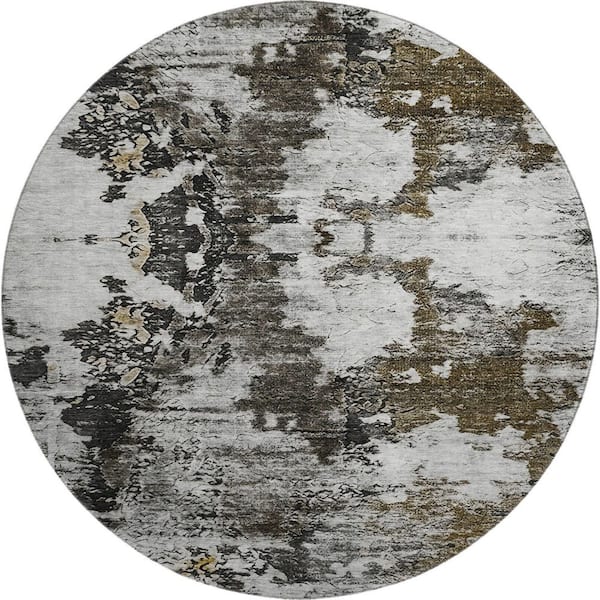 Mayfield Premium Machine Washable Indoor/Outdoor Geometric AMF638 Taupe 8 ft. x 8 ft. Round Area Rug