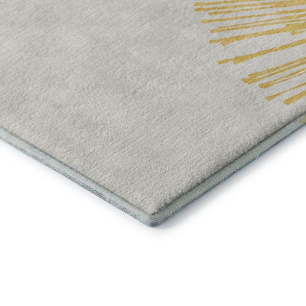 Mayfield Premium Machine Washable Indoor/Outdoor Geometric AMF642 Gold 3 ft. x 5 ft. Area Rug