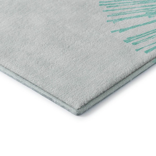 Mayfield Premium Machine Washable Indoor/Outdoor Geometric AMF642 Teal 8 ft. x 10 ft. Area Rug