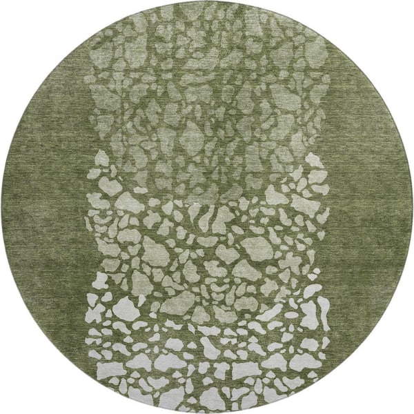 Mayfield Premium Machine Washable Indoor/Outdoor Geometric AMF643 Olive 8 ft. x 8 ft. Round Area Rug
