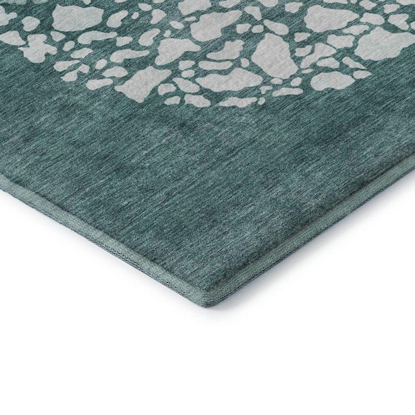 Mayfield Premium Machine Washable Indoor/Outdoor Geometric AMF643 Teal 8 ft. x 8 ft. Round Area Rug
