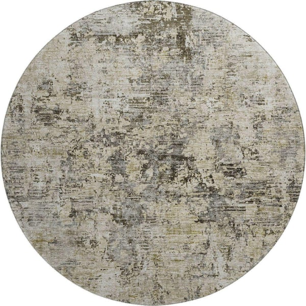 Mayfield Premium Machine Washable Indoor/Outdoor Geometric AMF644 Taupe 8 ft. x 8 ft. Round Area Rug