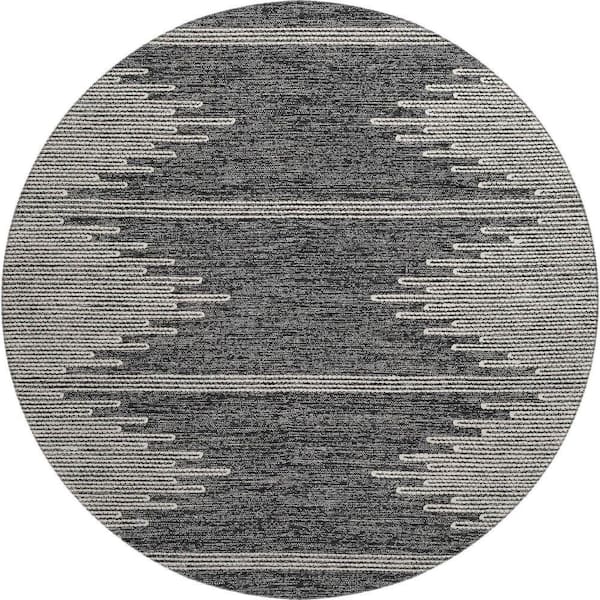 Mayfield Premium Machine Washable Indoor/Outdoor Geometric AMF647 Charcoal 8 ft. x 8 ft. Round Area Rug