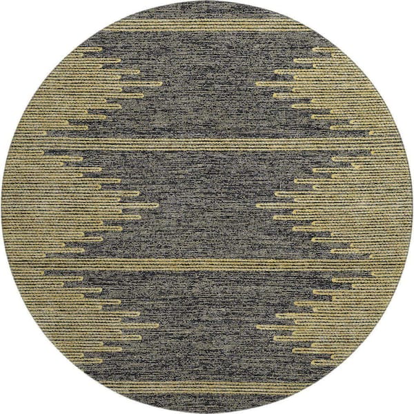 Mayfield Premium Machine Washable Indoor/Outdoor Geometric AMF647 Graphite 8 ft. x 8 ft. Round Area Rug