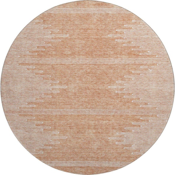 Mayfield Premium Machine Washable Indoor/Outdoor Geometric AMF647 Salmon 8 ft. x 8 ft. Round Area Rug