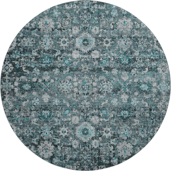 Mayfield Premium Machine Washable Indoor/Outdoor Geometric AMF651 Teal 8 ft. x 8 ft. Round Area Rug