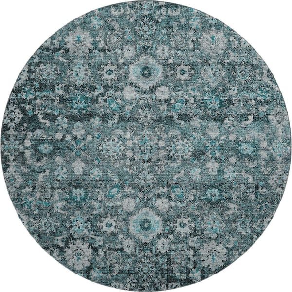Mayfield Premium Machine Washable Indoor/Outdoor Geometric AMF651 Teal 8 ft. x 8 ft. Round Area Rug