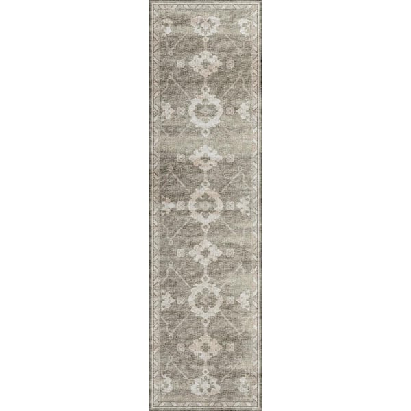 • Washable and non-skid, beige transitional 2x8 runner rug