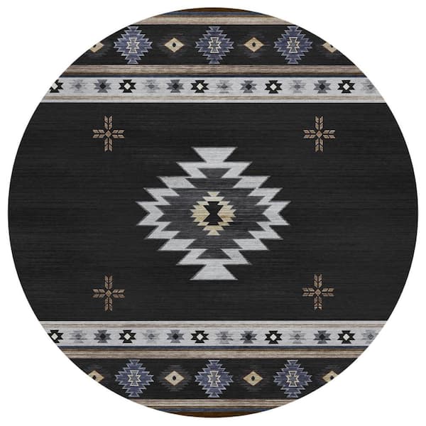 Sonora Black 8 ft. x 8 ft. Geometric Indoor/Outdoor Area Rug