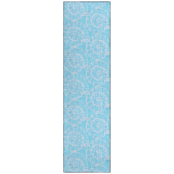 Surfside Blue 2 ft. 3 in. x 7 ft. 6 in. Geometric Indoor/Outdoor Area Rug