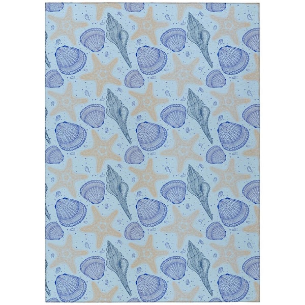 Surfside Blue 5 ft. x 7 ft. 6 in. Geometric Indoor/Outdoor Area Rug