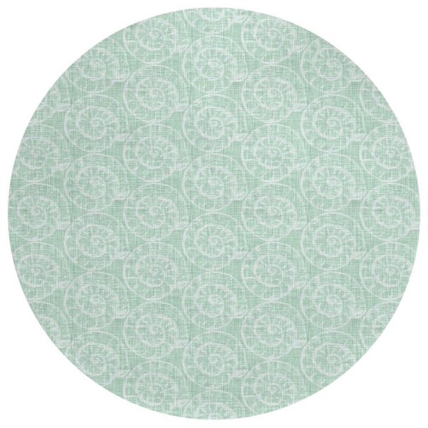 Surfside Green 8 ft. x 8 ft. Geometric Indoor/Outdoor Area Rug