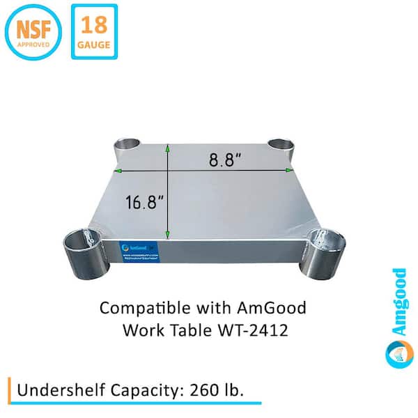 Additional Galvanized Steel Undershelf for 24 in. x 12 in. Kitchen Prep Table Adjustable Galvanized Steel Undershelf