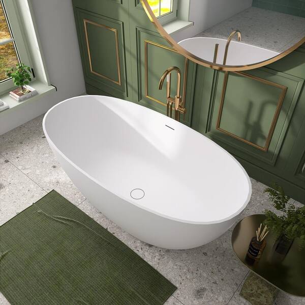 Mirea 59 in. x 29 in. Solid Surface Stone Resin Flatbottom Freestanding Double Slipper Soaking Bathtub in Matte White