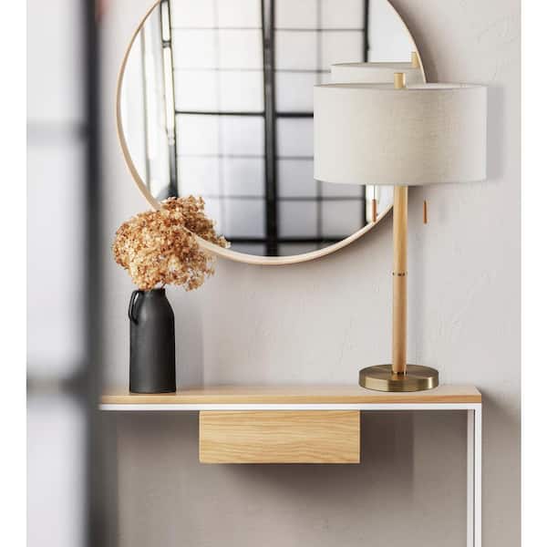 Madeline 28 in. Natural Rubberwood and Antique Brass Table Lamp