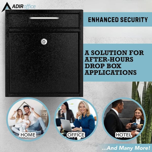 Medium Black Wall-Mounted Steel Drop Box Mailbox