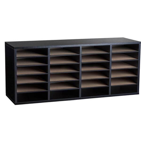 Wood Adjustable 24 Compartment Literature Organizer, Black