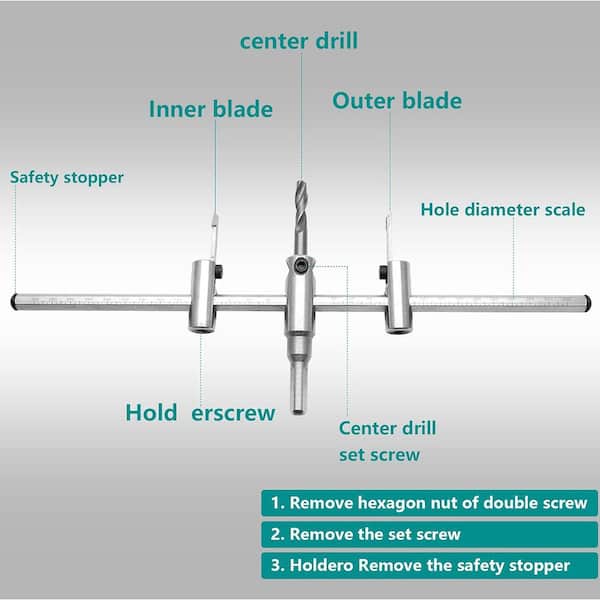 Adjustable 1-3/16 to 11-3/4 Heavy Duty Hole Saw with Circle Cutter Drill Bit Tool for Drywall Wood Plaster Silver