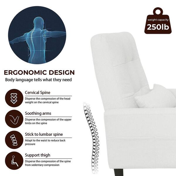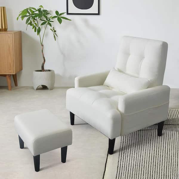 Adjustable Fabric Tufted Cushion Back Cream Recliner Chair With Ottoman, Lumbar Pillow And Side Pocket