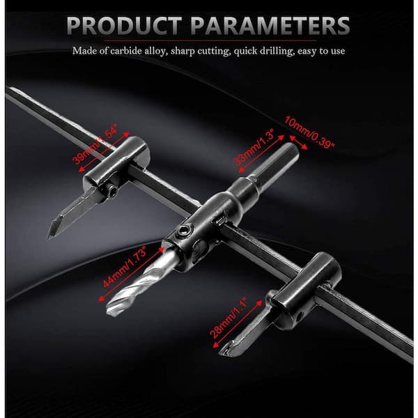 Adjustable Hole Saw 1-3/16 to 11-3/4 Circle Cutter Drill Bit for Wood Drywall with High-Grade Carbide Alloy Blade