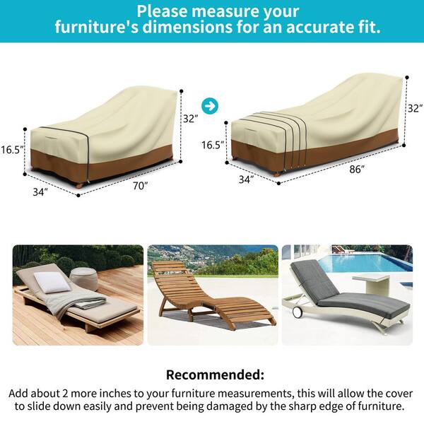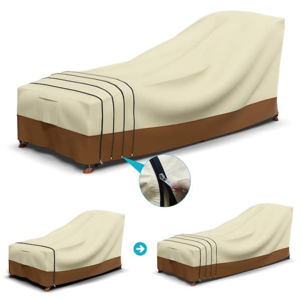 Adjustable MAX-86 in. L x 34 in. W x 17 in. H Beige and Brown Lounger Cover Waterproof Heavy-Duty for Custom Fit