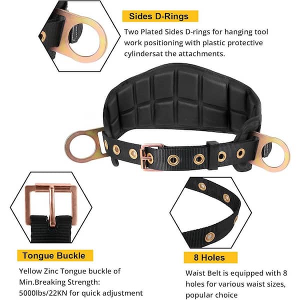 Adjustable Safety Harness Climbing Belt Black Fall Protection for Men with Ergonomic Pad and D-Rings 5000 lbs Capacity
