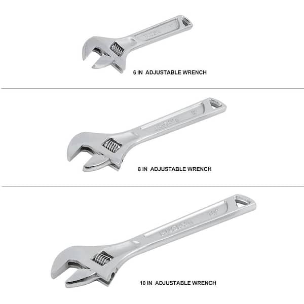 • Includes a 6-in, 8-in and 10-in Adjustable Wrench