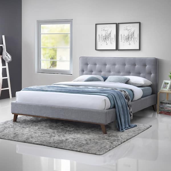 Adriano Light Gray Solid Wood Frame King Size Platform Bed
