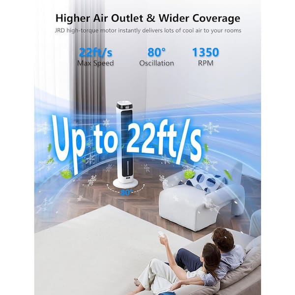 1-12 Hours Evaporative Air Cooler Portable Air Conditioner Cools with Remote in White Bladeless Tower Fan