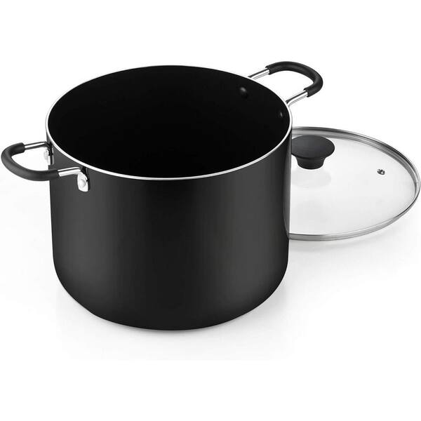 10.5 Qt. Thick Gauge Aluminum Nonstick Stockpot in Black with Glass Lid Durable Stay Cool Riveted Handles