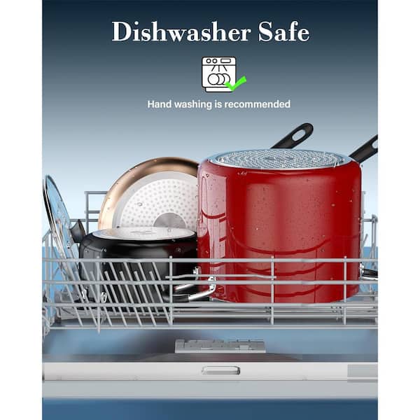 10.5 qt. Thick Gauge Aluminum Nonstick Stockpot in Red with Glass Lid Durable Stay Cool Riveted Handles
