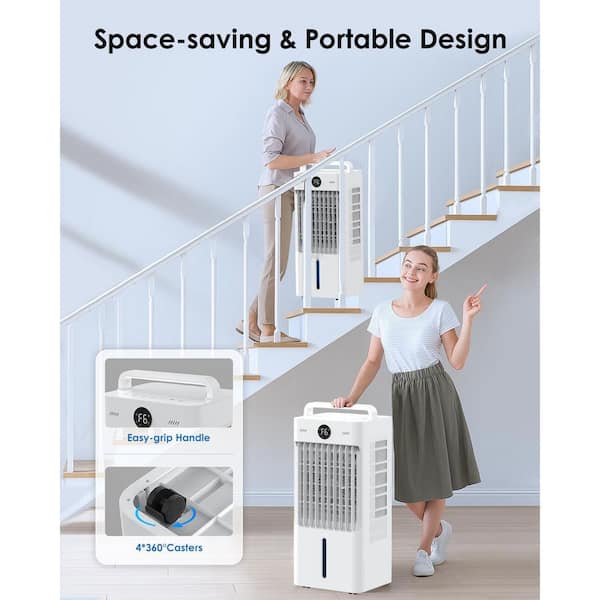 12 H Timer 3-in-1 Portable Air Conditioner Evaporative Cooler w 2.64Gal Tank, 3-Modes, 6-Speeds, Remote, Cools 270 sq ft