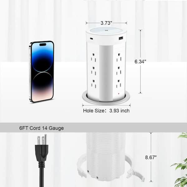 12-Outlets 2 USB-A, 2 USB-C Ports,15W Wireless Charger,Max 45W Power Delivery,Pop Up Countertop Outlet Tamper Resistant