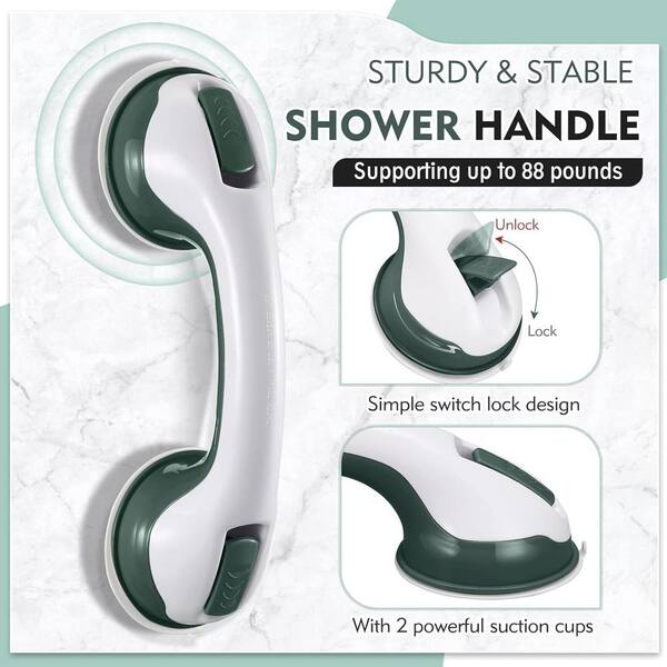 12 in. Concealed Screw Strong Suction Shower Grab Bars in Green