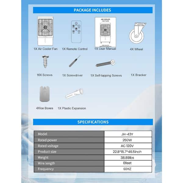 12H Timer 6000CFM Evaporative Air Cooler with 13.5-Gal Water Tank, 4-Ice Packs, Remote Control, Cools Up to 1300 sq. ft.