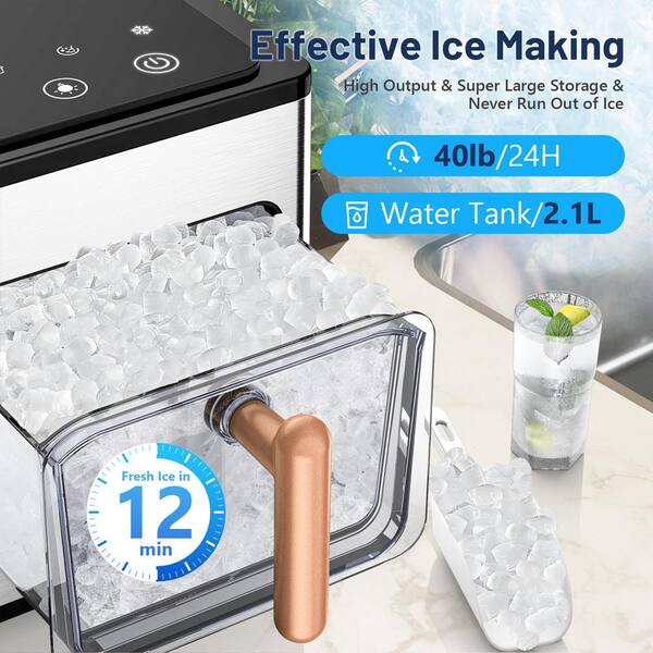 13.7 in. 40 lb. Pebble Ice Maker with Soft Chewable Ice Portable Ice Maker Stainless Steel with Touch Screen in Silver