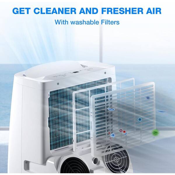 14000 BTU 4-in-1 Portable Air Conditioner Cools 700 sq. ft. with Heater, Dehumidifier, Remote, Auto Swing in White