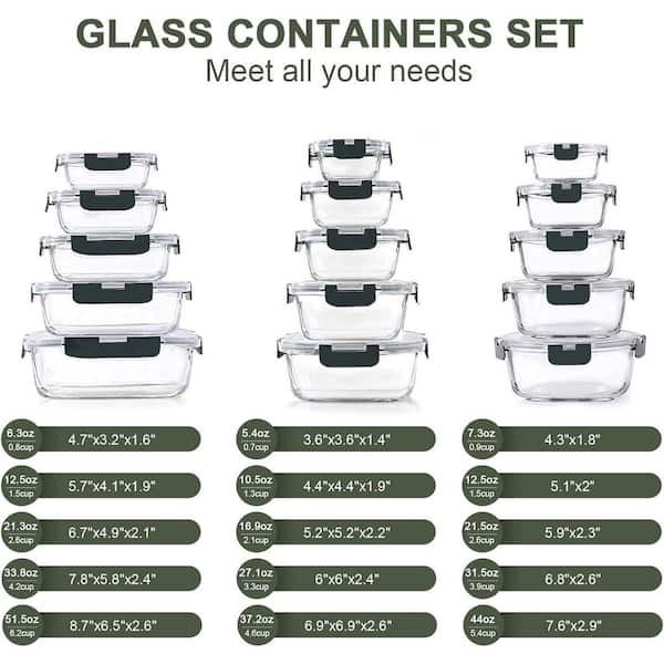 15 Pack Airtight Glass Meal Prep Containers Set with Snap Locking Lids for Microwave Oven Freezer Dishwasher