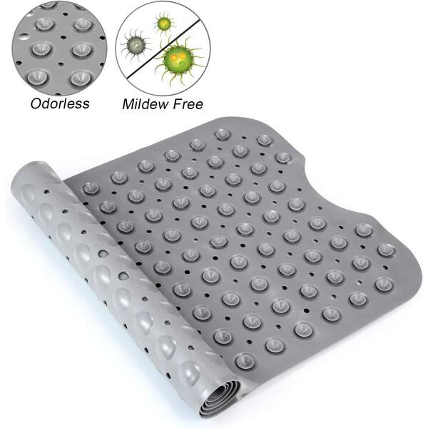 16 in. x 40 in. Non-Slip Bathtub Mat with Suction Cups and Drain Holes in Gray