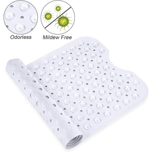 16 in. x 40 in. Non-Slip Bathtub Mat with Suction Cups and Drain Holes in White