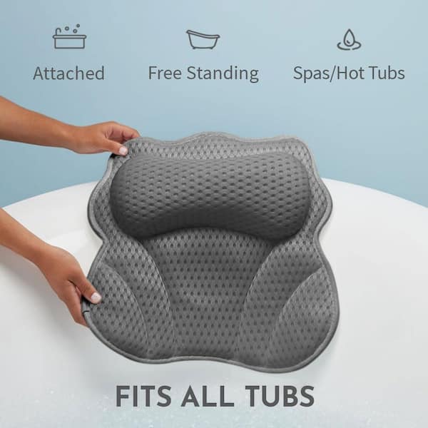 17.2 in. L x 16.5 in. W x 17.2 in. H Thick Padded Bath Accessory, Bath Pillow Tub in Gray with 4D Mesh and Suction Cup