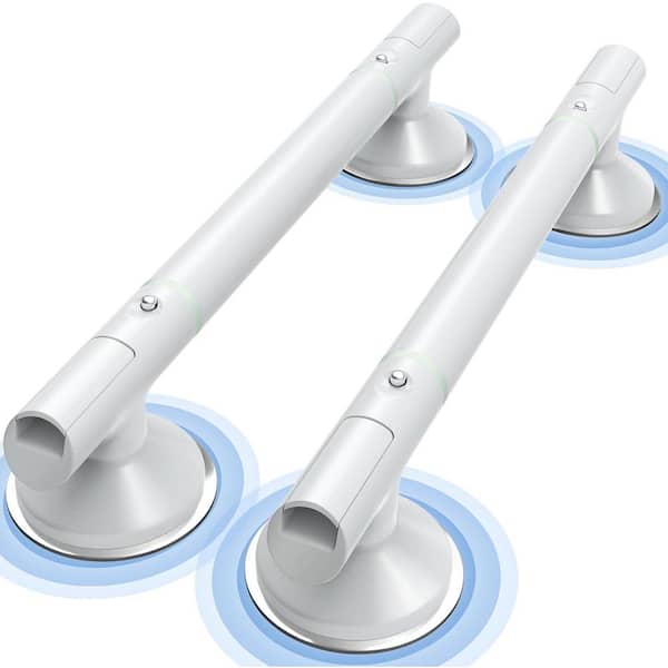 17.7 in. Shower Grab Bars 2 Pack Strong Suction Cup TPE Non-Slip Handles for Elderly Seniors Bathroom Safety White