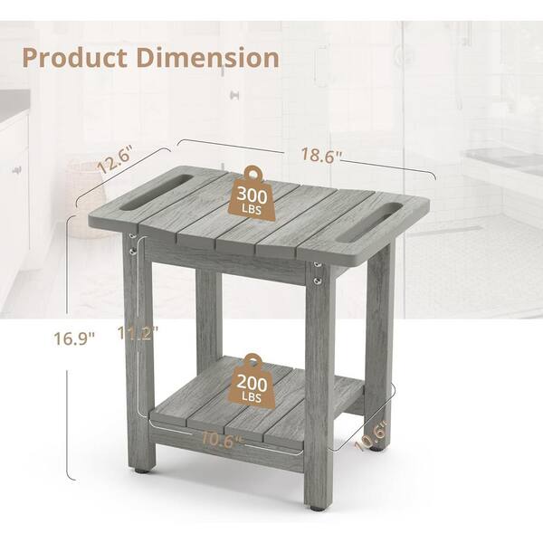 18.6 in. W, Waterproof Polystyrene Non-Slip Shower Chair Stool with Shelf and Handles in Light Gray