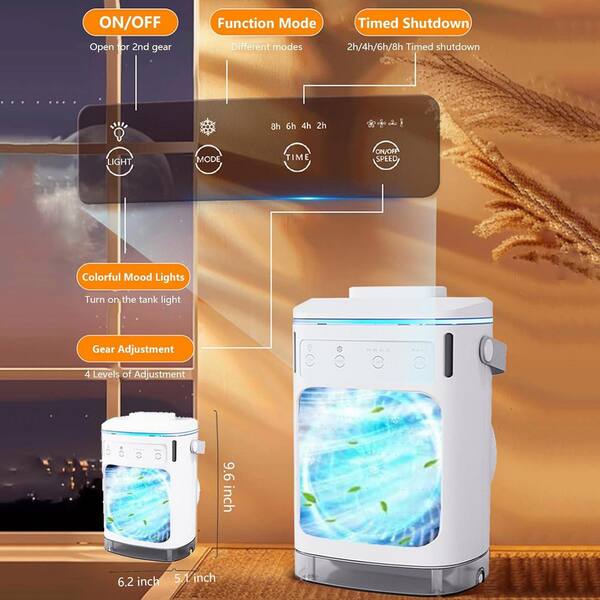 2/4/6/8H Timer Portable Air Conditioner Evaporative Cooler with 900ML Tank, 3-Speeds, Dual Mist Spray, 7-Color Light