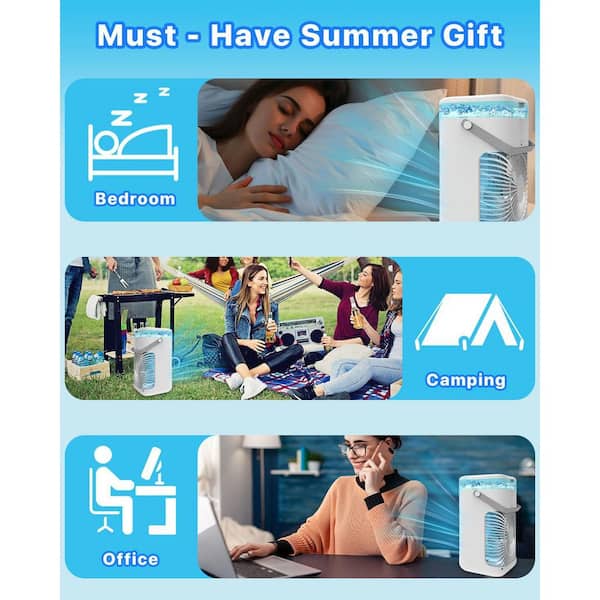 2-4H Timer Mini Portable Air Conditioner Evaporative Cooling Fan with 3-Speeds, 2-Mist Modes, 180° Oscillation, Lights