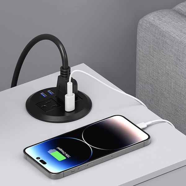 2-Outlets, 2 USB-A, 1 USB-C, 20W Fast Charging, Flush-Mount For Workspace Essential Desk, Desktop, Black, 1-Pack