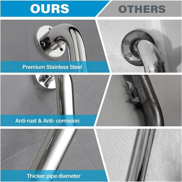 2-Pack 1 2 in. Handicap Grab Bars Stainless Steel Anti Slip Shower Handles Safety Bars for Bathtubs & Showers